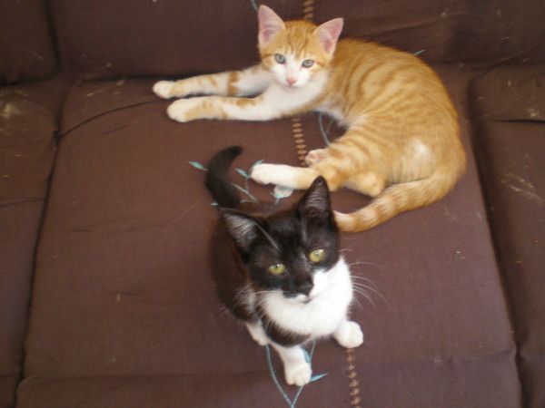 elle est noire et blanche et je mets une photo d'elle avec mon dernier chaton, freesbi adopté peu de tps après